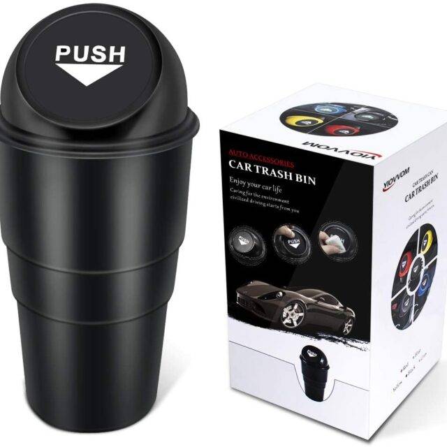 Made from non-toxic ABS plastic, our little trash bin mimics the look of large, full-sized trash cans, with a “PUSH” logo at the lid opening. The can fits right into a standard-sized cup holder for a trash bin for snack wrappers right within your reach. The can measures 7.9 x 2.7 inches (L x W).